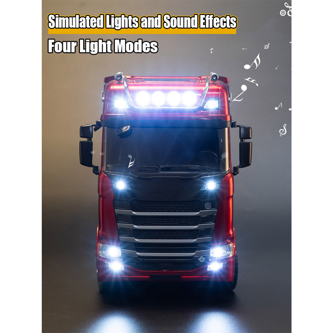 .Customizable Lighting Effects: Adjustable headlights, tail lights, auxiliary lights, roof lights, and panel lights, plus an all-off option, letting you personalize the truck’s appearance for added visual appeal.