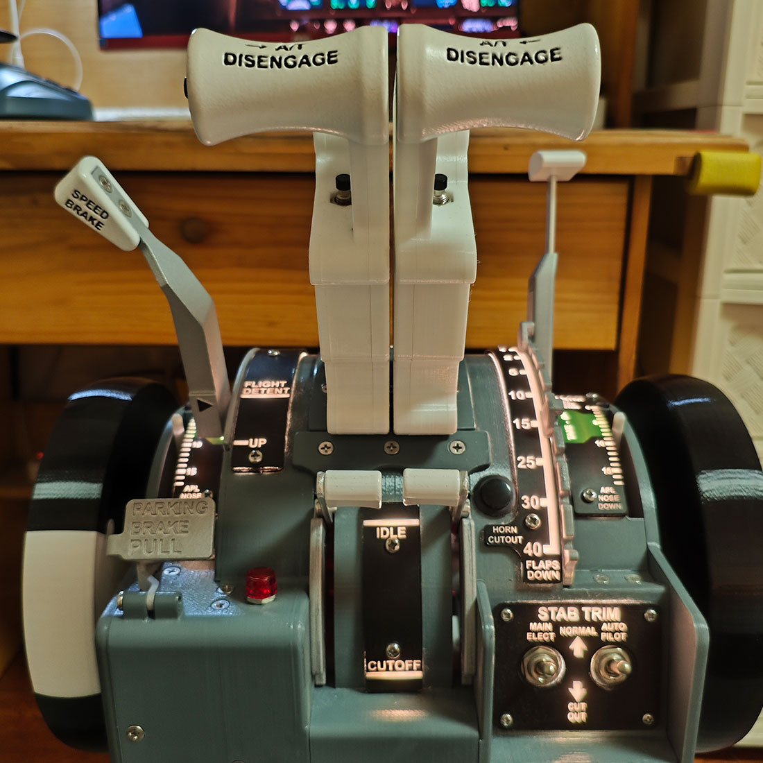 .Robust Construction with Metal Reinforcement: Built using high-precision 3D-printed components combined with metal support structures. Key load-bearing areas like the trim axis and bracket connections are reinforced with metal for durability and long-term stability. The detailed front panel integrates essential modules including Parking Brake, Speed Brake, Flaps, and Stab Trim.