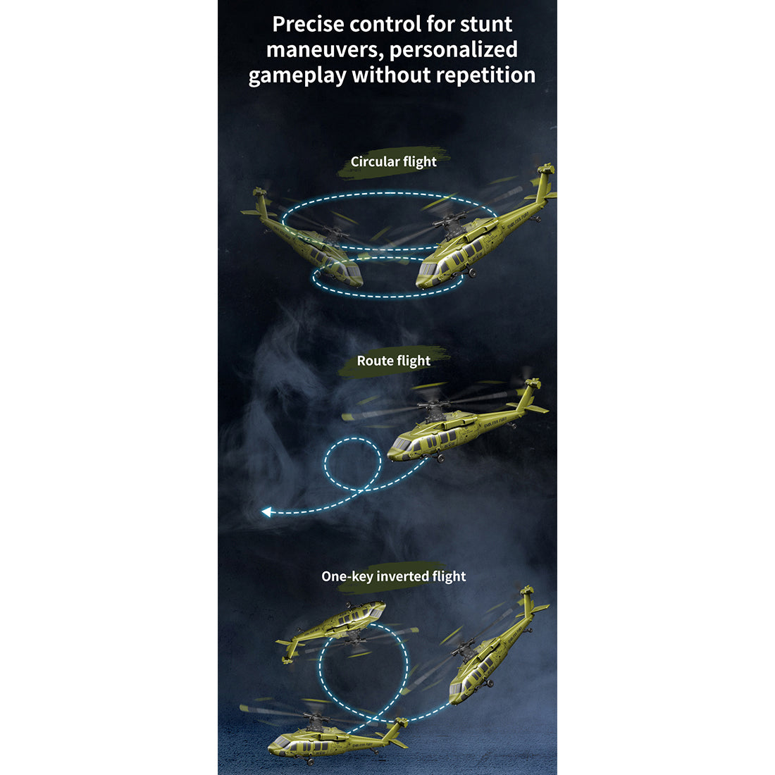 .Five-Channel Flybarless Design with Stable Aerodynamics: The five-channel flybarless structure applies aerodynamic principles to the propeller design, delivering strong power output and inherent self-stability for smooth and controlled flight performance.