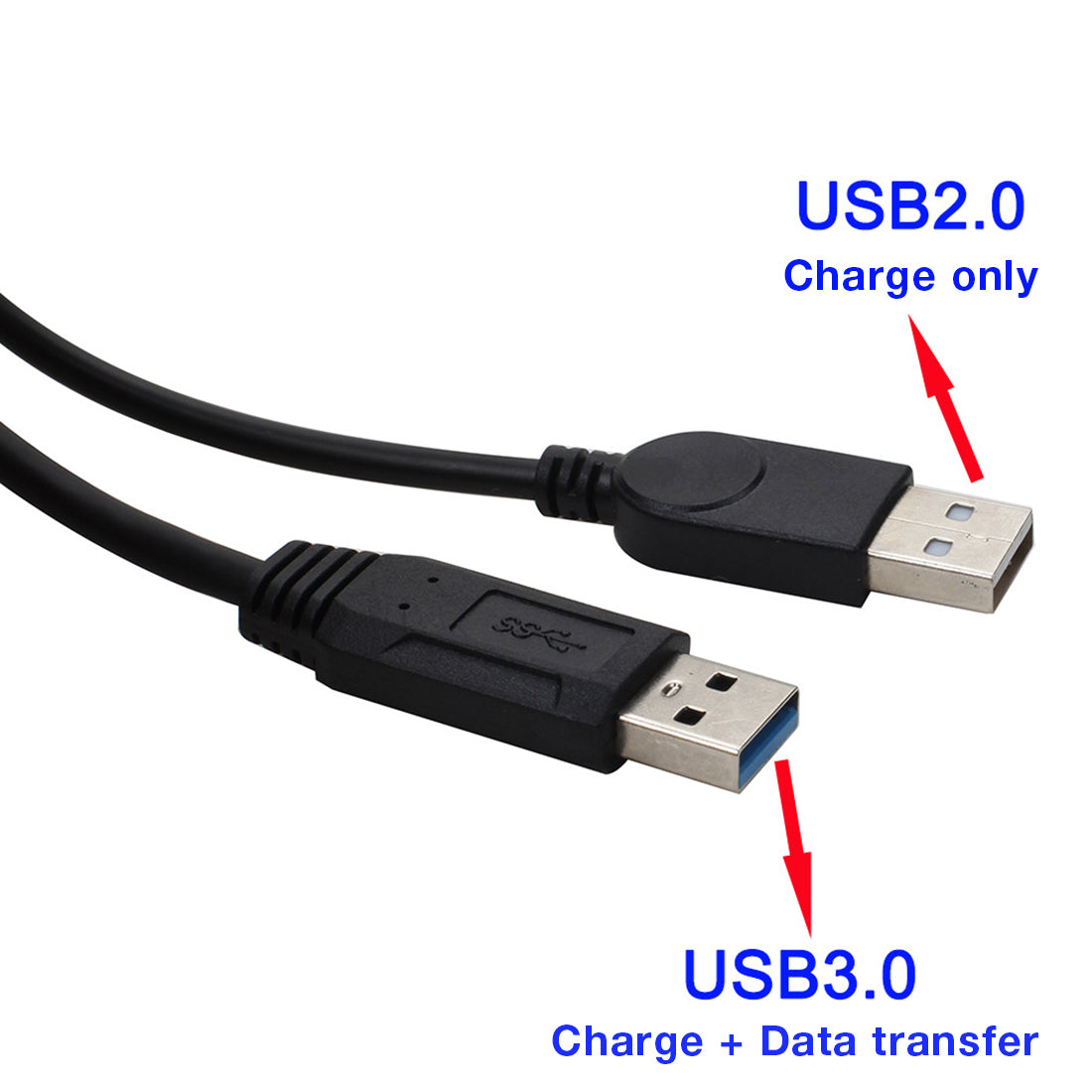 .Dual USB 3.0 + 2.0 Male Connector for Power Enhancement: The USB 3.0 male connector handles high-speed data transfer and standard charging, while the USB 2.0 male connector is dedicated to additional power input. This clear role separation helps address insufficient power issues when connecting external devices.