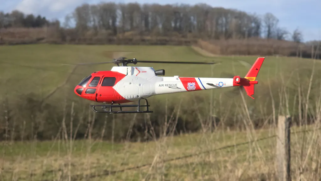 .AS350 Scale-Inspired Three-Blade Flybarless Structure: Scaled down from the AS350 helicopter, this model features a refined exterior design and a three-blade flybarless rotor configuration, emphasizing realistic proportions and mechanical layout.